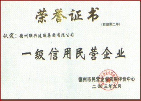 一級信用民營企業(yè)